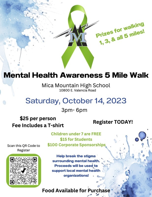 Attention Thunderbolts, get excited because Thunder Awareness will host their annual Mental Health Awareness Walk this Saturday, October 14th! Discounted student tickets are only $15, and that includes a T-shirt! To sign up use the QR code on the flyers, click herefor LINK or see Mrs. Stickney or Mr. Penland. The walk will take place from 3:00 to 5:30, followed by Student Government’s Homecoming Rally, where Homecoming royalty will be announced. Come out and support us, we hope to see you there!